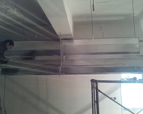 济南厨房排烟罩要看排风量要根据厨房大小、炉灶的数量、烟罩的尺寸、污染物的散发量来确定。一般有几种方法确定厨房的排风量: