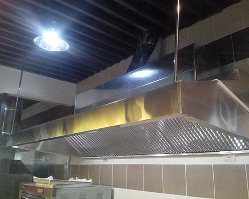 济南厨房排烟罩工程除了比较大型的清洗外,平时也要多做保养。有的公司在对管道进行处理后,进行保养,形成的保护膜也能使油渍不易残留在油烟管道内。